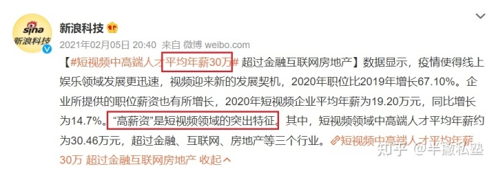 招聘大数据显示,短视频平均年薪超30万。