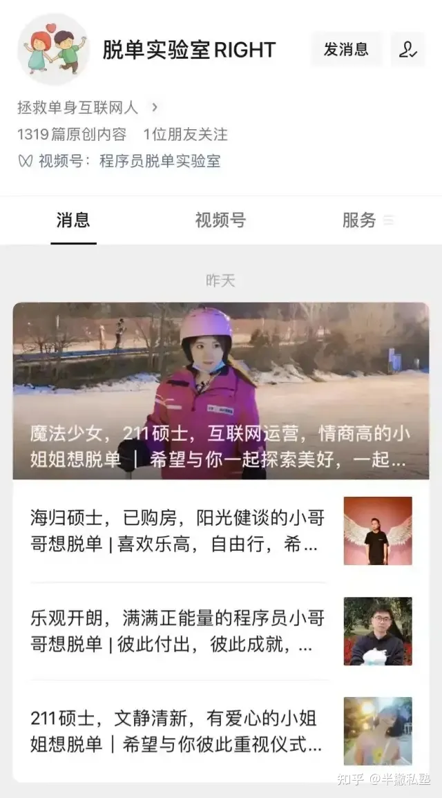 不过目前主要还是负责公众号的内容,每天推出一位来自北上广深地区的优质女嘉宾。如果大家有认识这些地区中的优质且需要脱单的小姐姐也可以推荐给我~