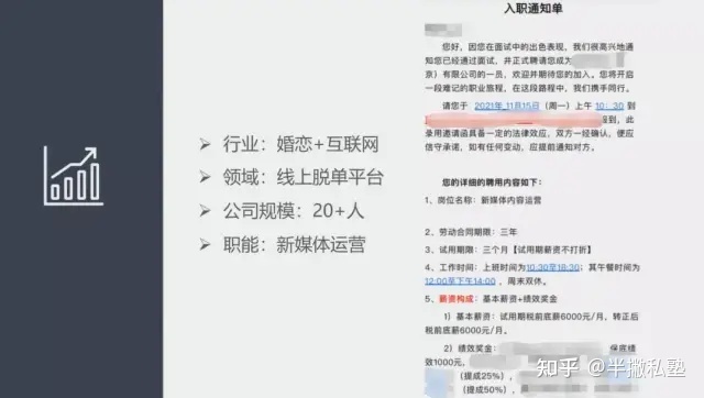 从半撇私塾毕业之后,现在我在南京的一家“婚恋+互联网”的公司做担任媒体运营,负责流量增长。