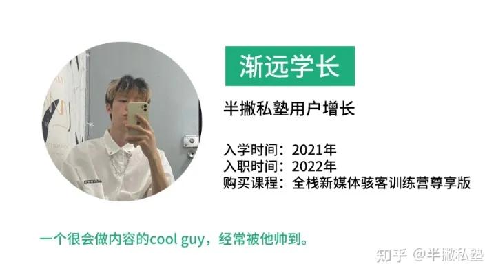蔷薇学姐哇,这个问题,我真的太有发言权了!从半撇私塾的学员,到兼职Mentor(这个职位现在已经停招了),再到正式入职半撇私塾,感觉自己是在一步一步打入半撇私塾内部。