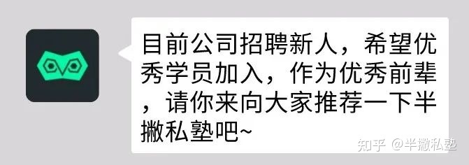在刚进半撇私塾学习的那段时间,我看到课程提到成绩好的话有机会直接内推到半撇私塾。但当时我没怎么在意,因为想着我的成绩可能也达不到要求。
