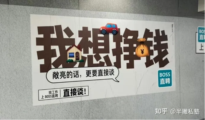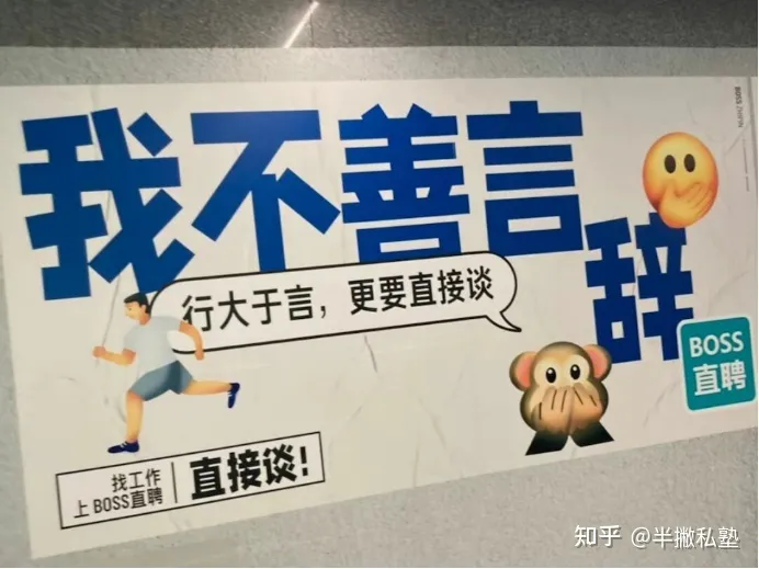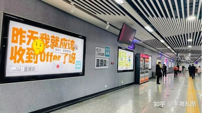 不仅如此,BOSS招聘还在北京、长沙等多地的地铁站投放了一组引人注目的崭新海报文案,引起了众多网友讨论。