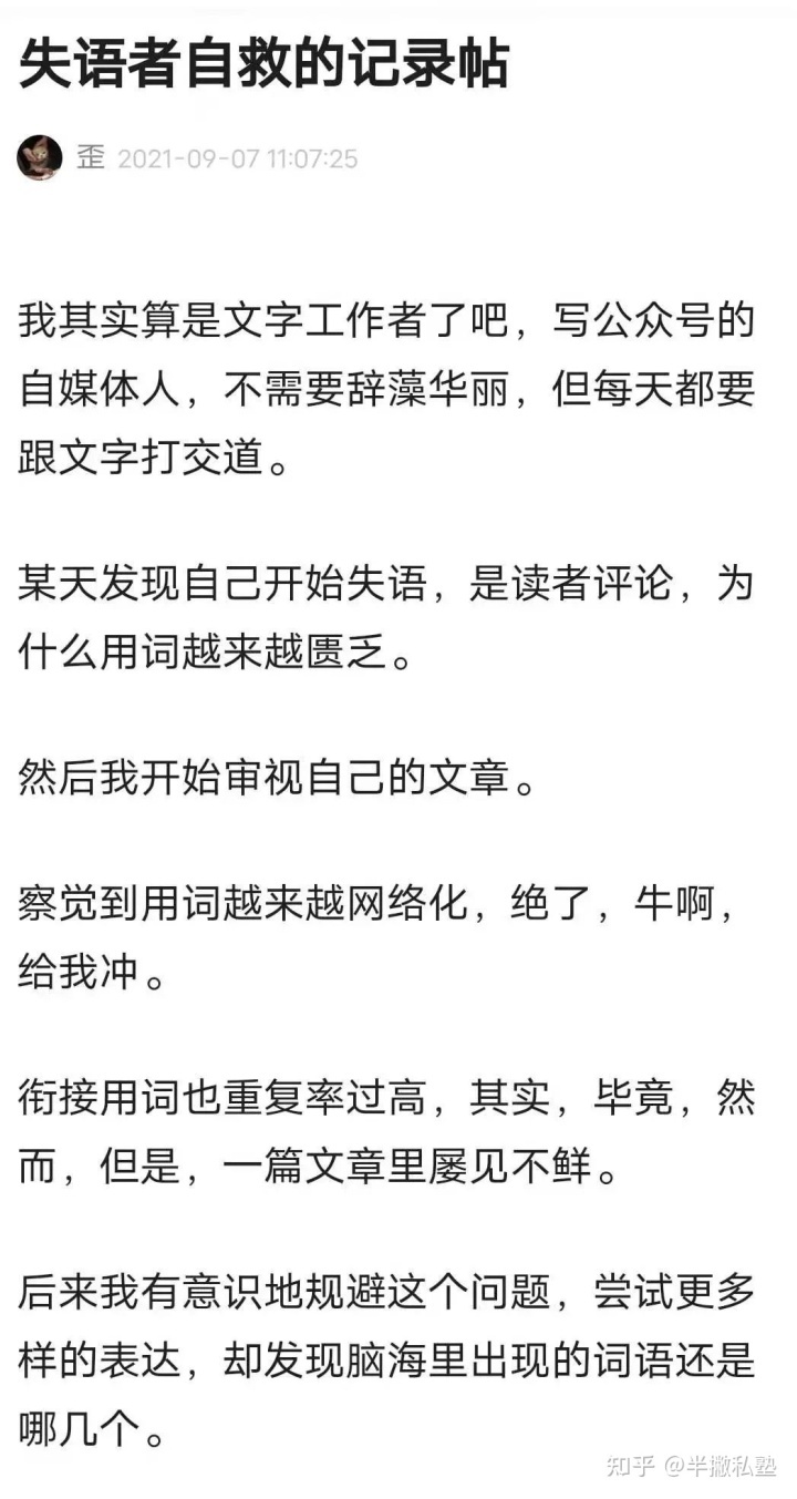 真正要输出观点和表达复杂情绪时,词不达意,有口难言,这是文字失语者们的无奈与悲哀。
