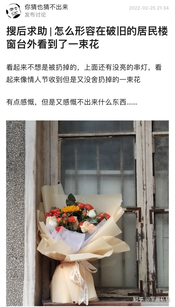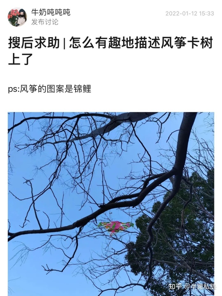 小组里有一个“搜后求助”的话题,就是网友发图求助,其他网友留言配文案,类似于我们小时候的看图说话。