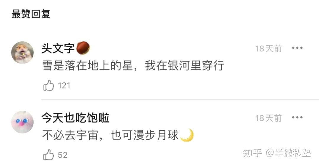 撇哥给大家挑选了一些高赞回复,一起来感受一下网友的文采和绝妙文字。