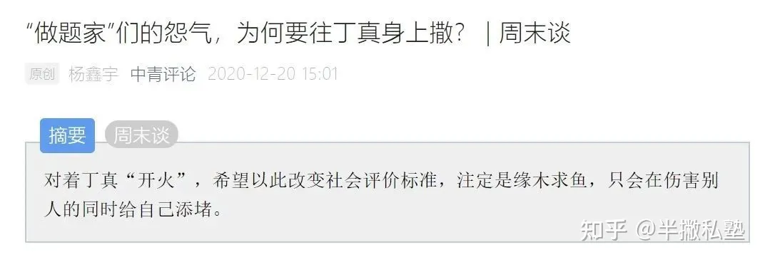 媒体舆论第一次污名化“小镇做题家”,源自2020年底《中青评论》的一篇文章:《“做题家”们的怨气,为何要往丁真身上撒?》。