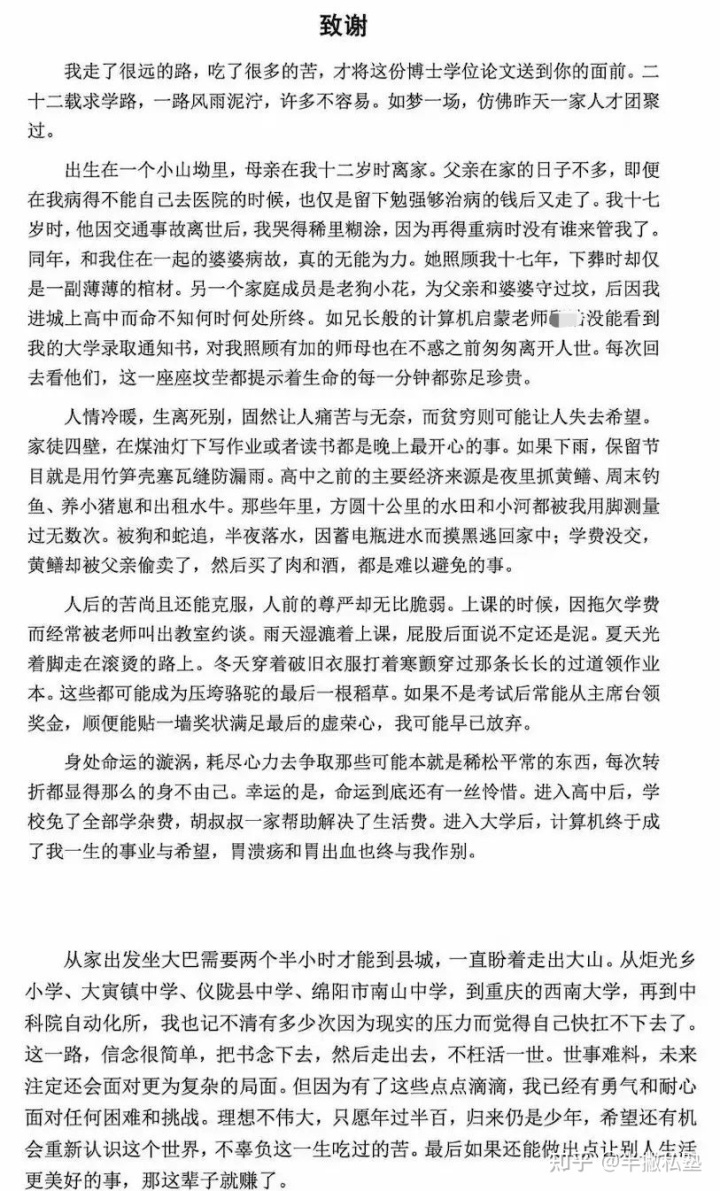 前几年,火遍全网的中科院黄国平老师的博士论文中有一句:“我走了很远的路,吃了很多的苦,才将这份博士学位论文送到你的面前”,令无数人动容。