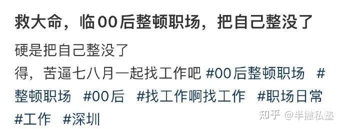 但同时这个流行的话题还有后半句的加持:“00后整顿职场,把自己给整没了”。