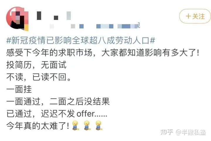 许多人纷纷在微博上诉苦:疫情让求职之路变得更艰难,简历已读不回变成了常态。