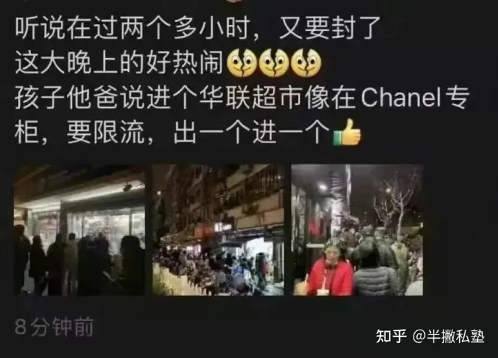 这一次上海的疫情,“吓到了”不少人。起初,网友还在说,上海人生活优雅精致,乐呵转发“上海爷叔核酸检测排队时喝红酒”“上海小区解封后第一件事喝咖啡”等段子。到后面,就优雅不起来了,因为大家发现上海人居然开始忙着抢菜了。