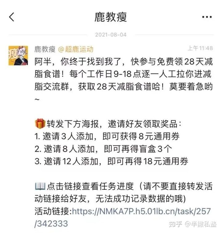 5)通过裂变活动带来新流量:可以在已有的社群里,或者朋友圈发出新的活动,要参加活动就需要转发朋友圈或邀请好友。