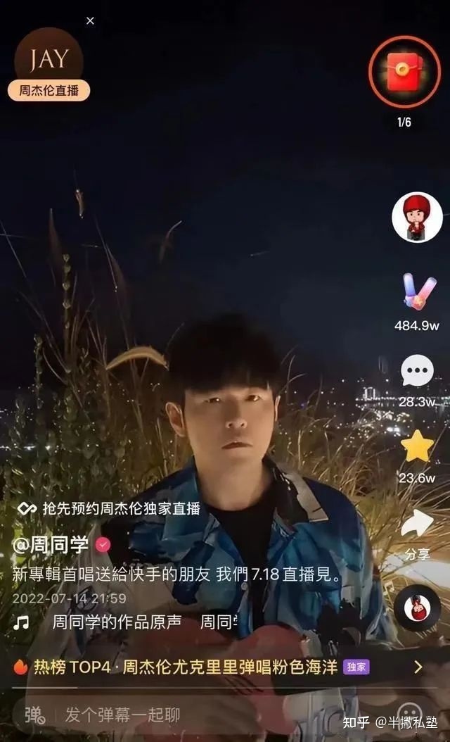 7月18日周杰伦在快手独家直播,累计观看人数超1.1亿!