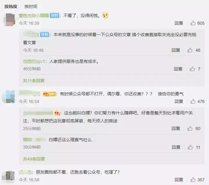 作为一个国民应用,微信的任何一个小调整或者新功能,都犹如一场声势浩大的「社会运动」。灰度测试付费阅读功能一出,你光从微博热评的内容,就能感受到人们对于这个功能有多大的抗拒:
